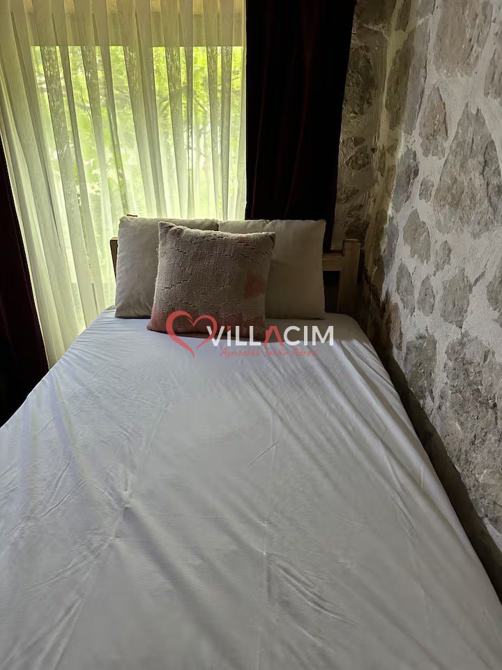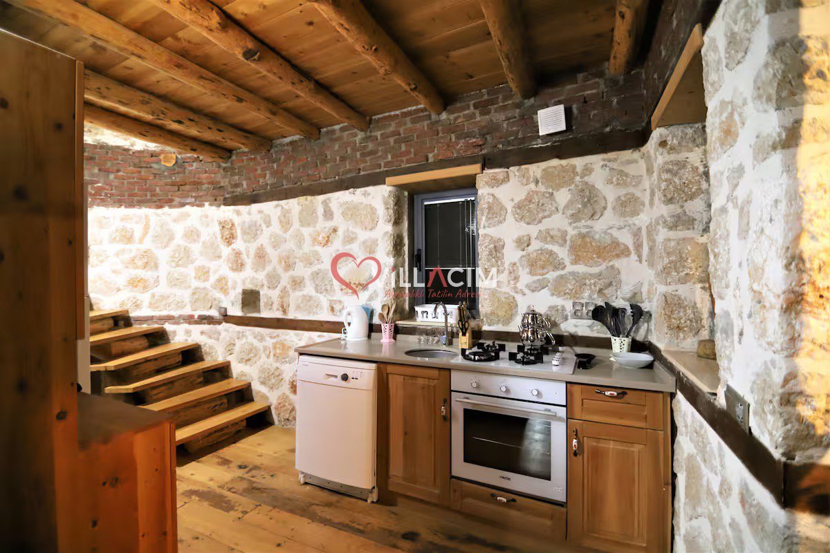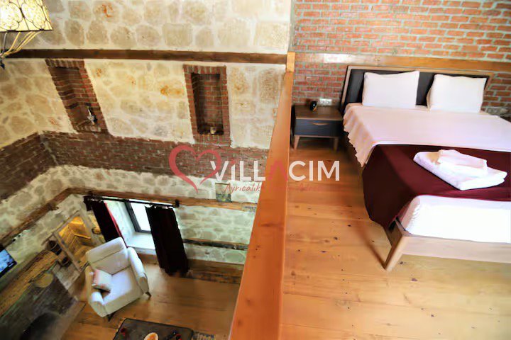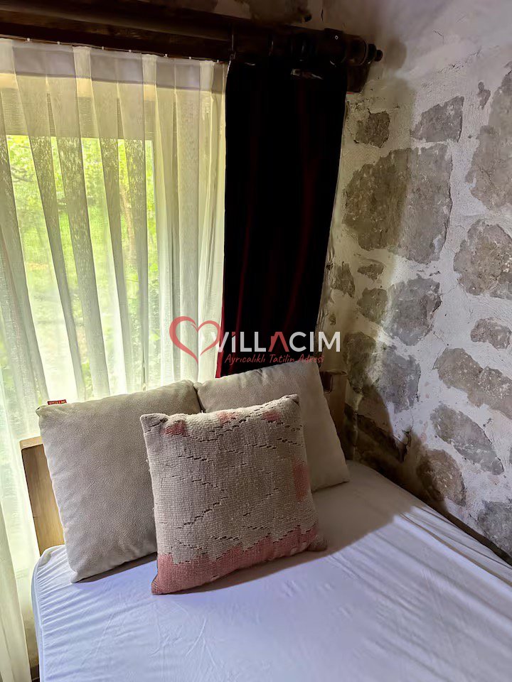 Dikkat: Bu apartımızda havuz bulunmamaktadır. Ancak jakuzili teras ve doğal serinlik sağlayan taş mimarisi ile konforlu bir tatil deneyimi sunulmaktadır.