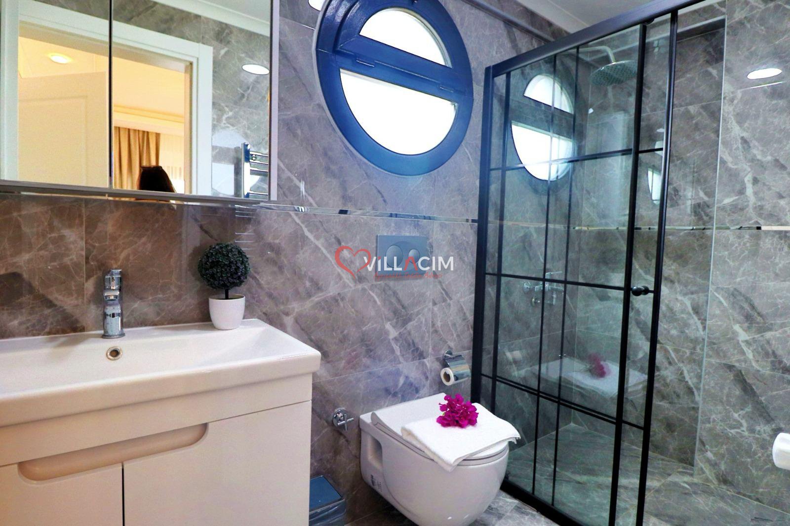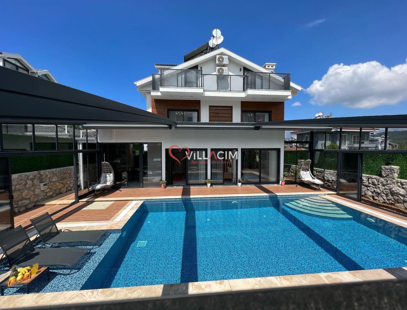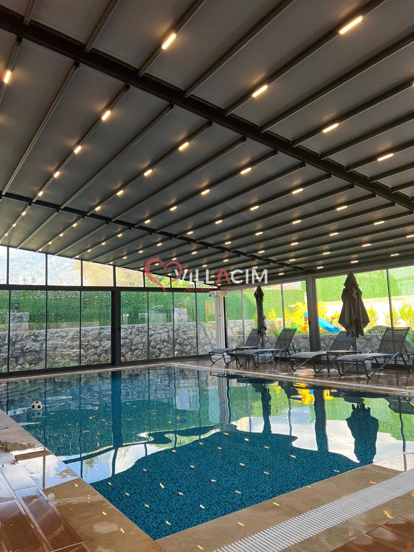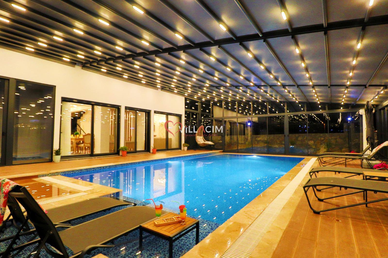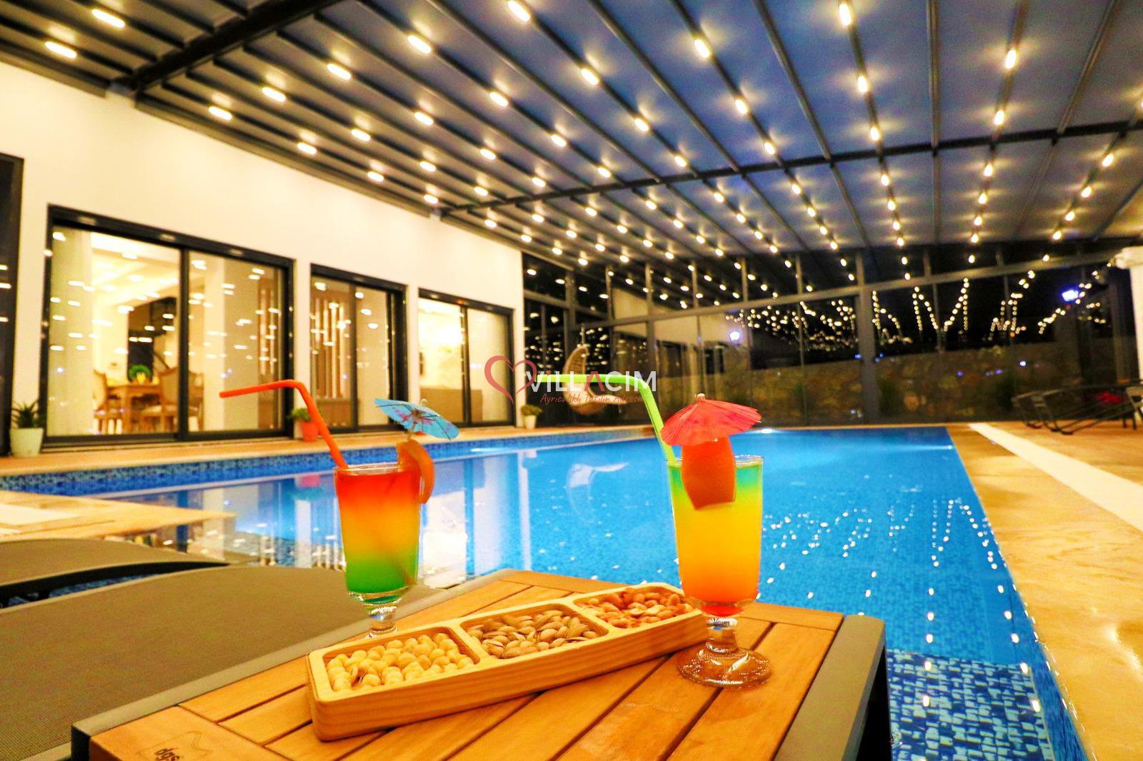 Özellikle açılır-kapanır havuz terası ile tatil keyfinizin ikiye katlanacagı muhteşem bir villadır.