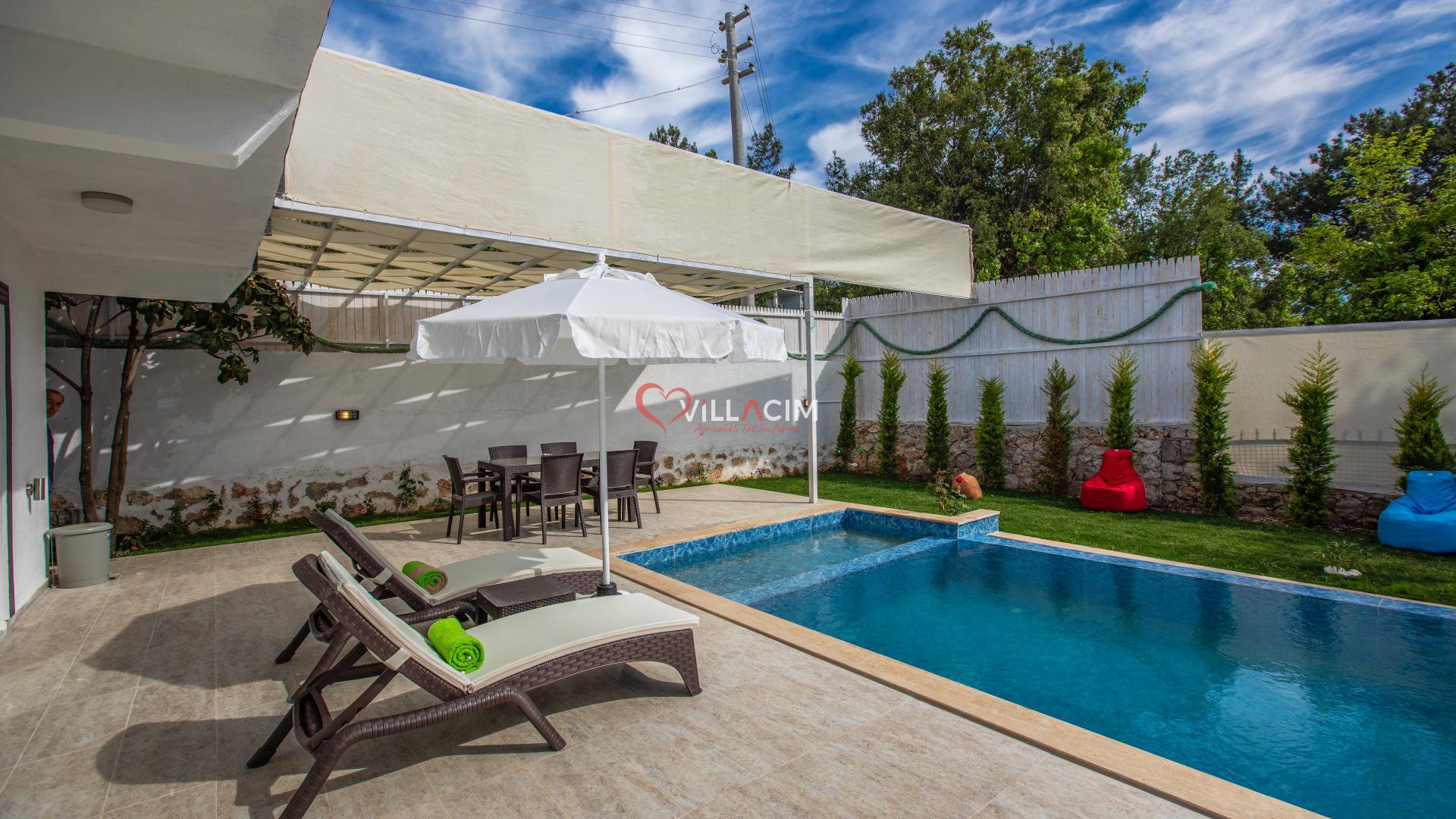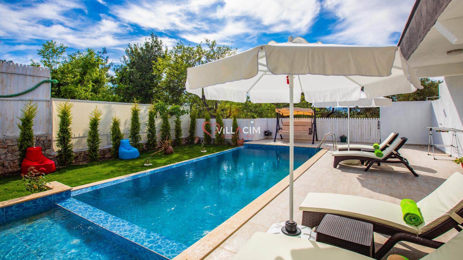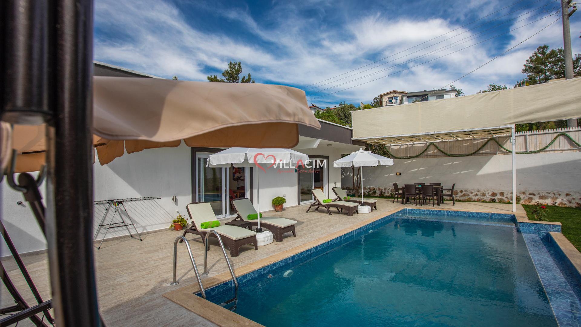 Antalya / Kalkan Üzümlü bölgesinde yer alan 4 kişi kapasiteye sahip villamız. Havuz alanı koruanklı villamızın cocuk havuzuda bulunmaktadır aynı zamanda jakuziside mevcuttur. Modern bir şekilde dizayn edilmiş villamız balayı ciftlerimiz ve aileler için uygundur.