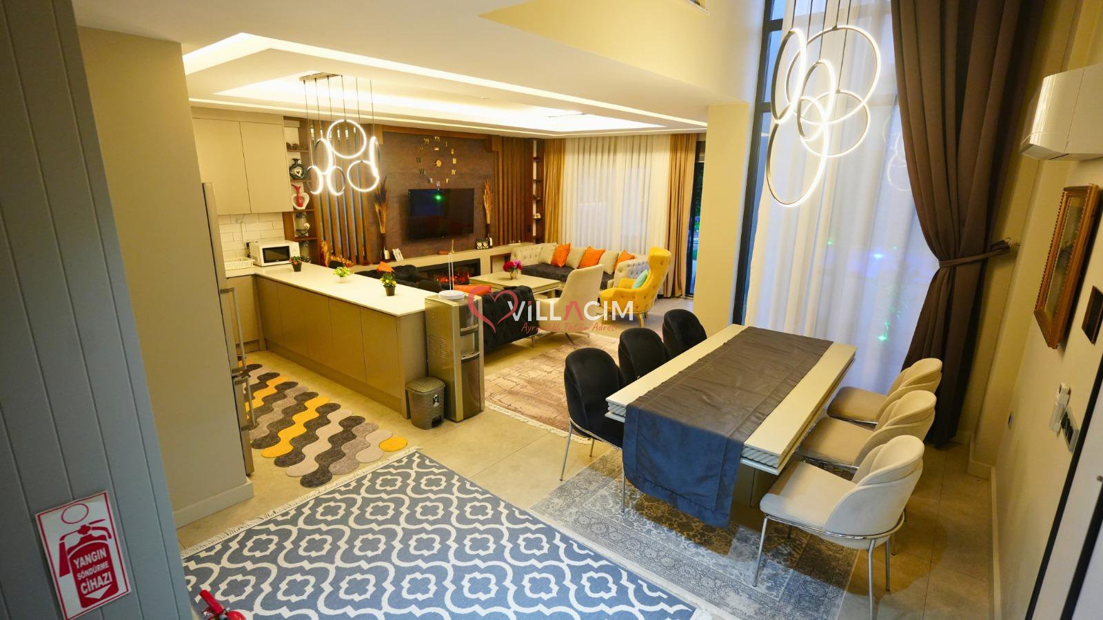 Kapasite:Toplam 8 kişilik kapasitesi sayesinde geniş aileler ve arkadaş grupları için son derece uygun olan villa, modern ve ferah yaşam alanlarıyla konforlu bir tatil deneyimi sunar.
