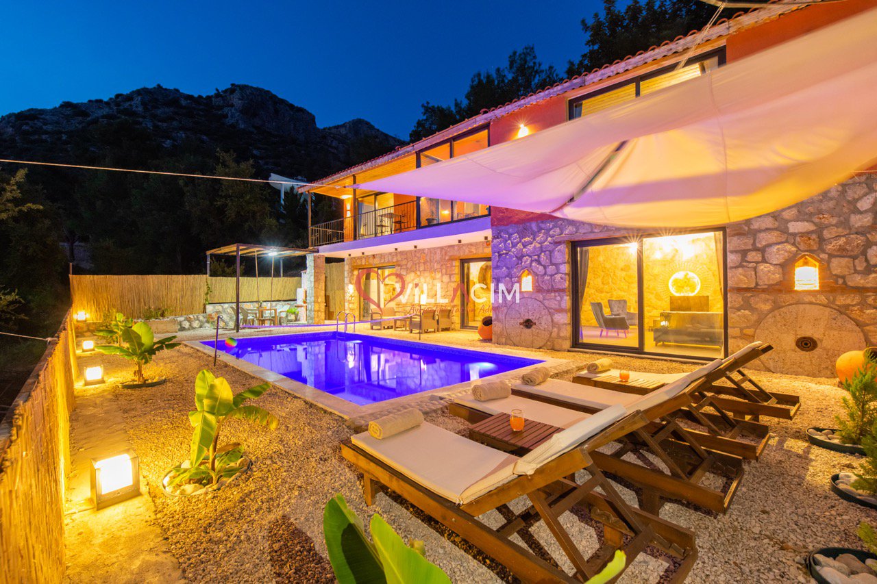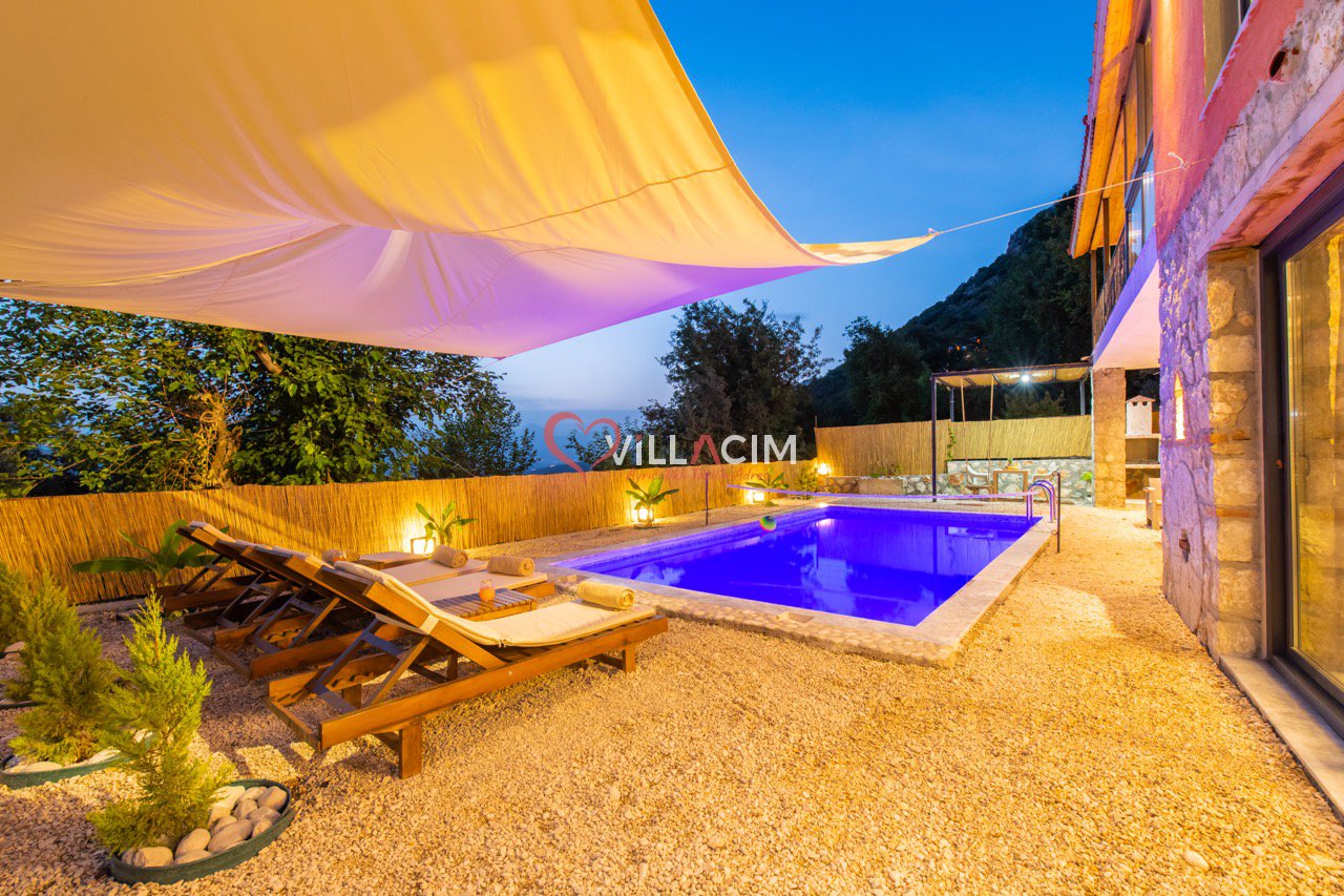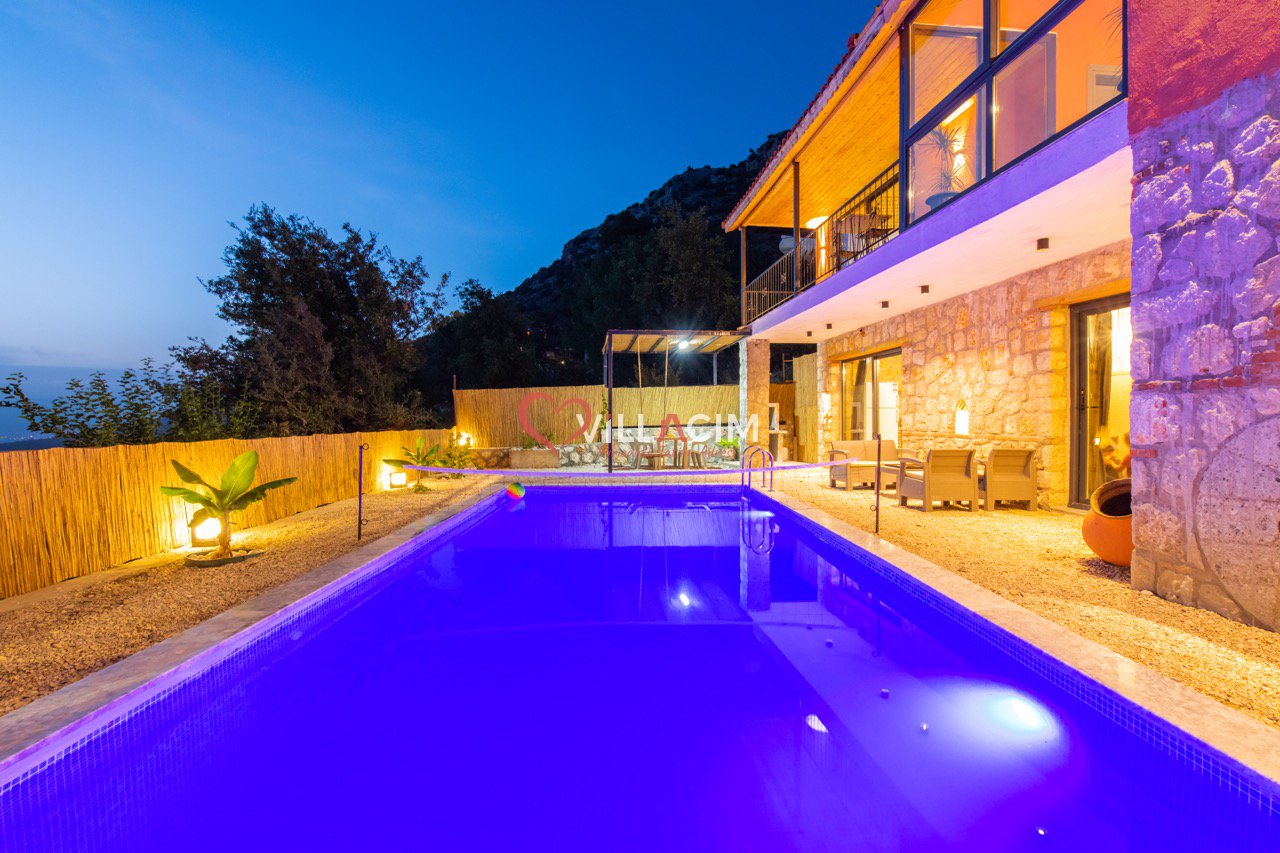 Villa Grand Ata, Kaş’ın Kalkan Üzümlü bölgesinde, Akdeniz’in muhteşem doğasında konumlanmış lüks bir tatil villasıdır. Modern tasarımı ve şık dekorasyonuyla öne çıkan villa, geniş bahçe, özel yüzme havuzu, güneşlenme terası ve barbekü alanı sunar. Tam donanımlı mutfak, 2 yatak odası, 2 banyo, jakuzi ve rahat bir oturma odasıyla konfor sağlar. Eşsiz Akdeniz manzarası, unutulmaz bir tatil deneyimi yaşatır. Villa Grand Ata, kendinizi evinizde hissetmenizi sağlayarak keyifli bir tatil sunar.