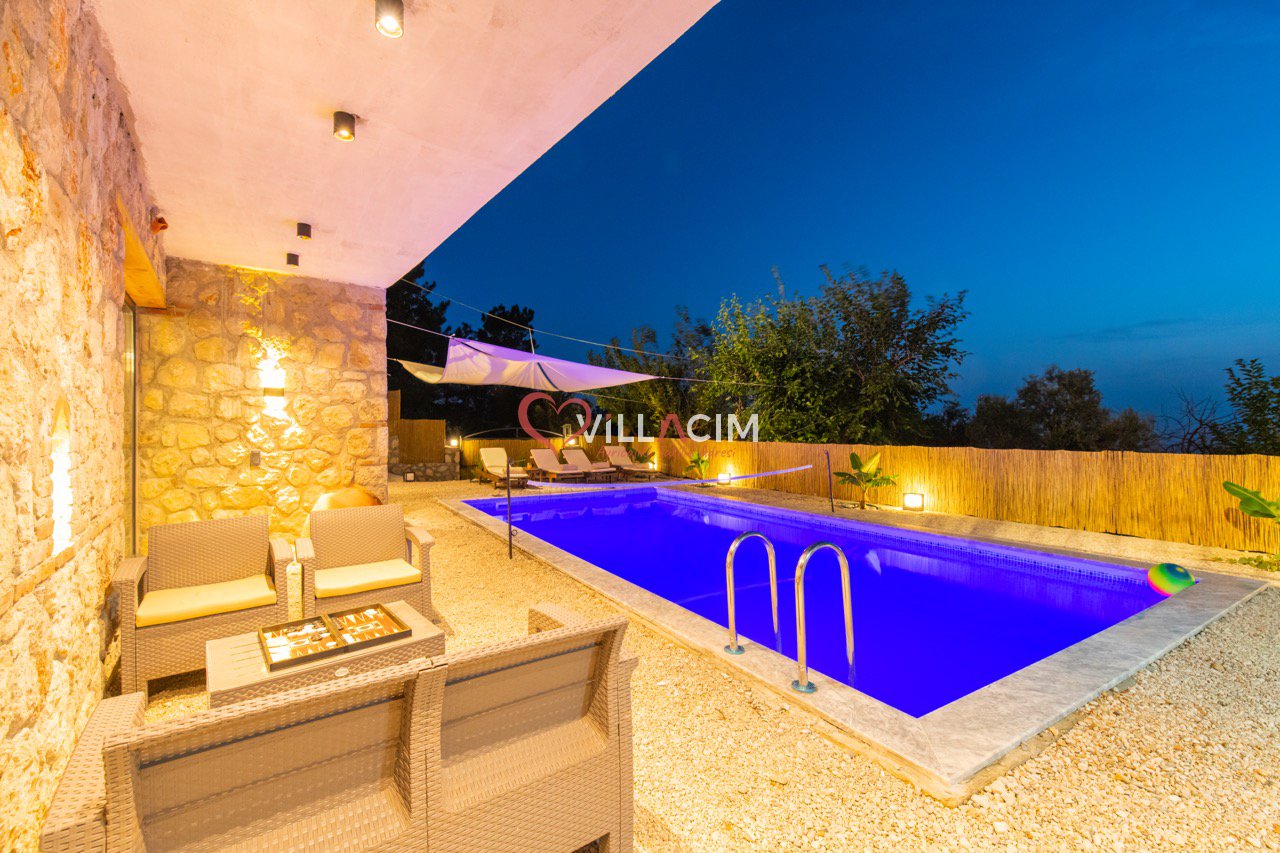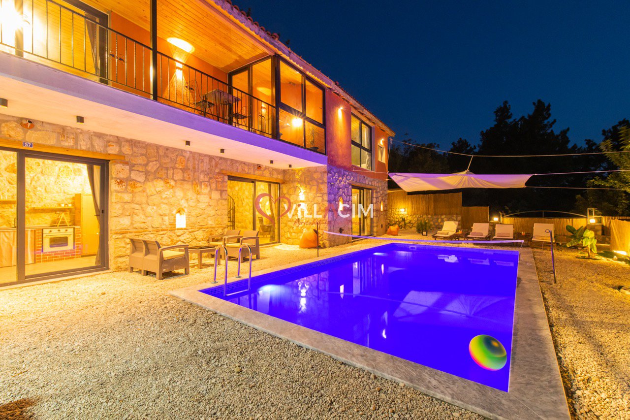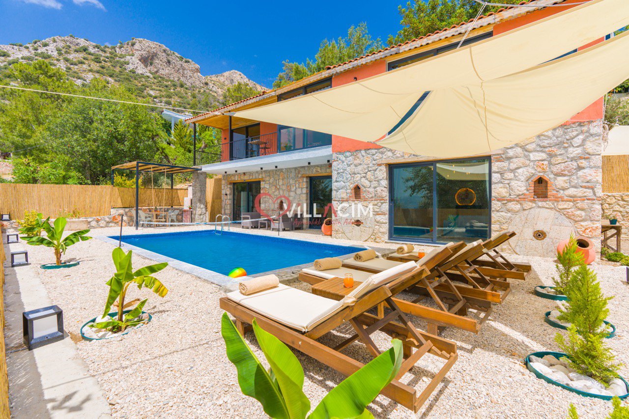 Villa Grand Ata, Kaş’ın Kalkan Üzümlü bölgesinde, Akdeniz’in muhteşem doğasında konumlanmış lüks bir tatil villasıdır. Modern tasarımı ve şık dekorasyonuyla öne çıkan villa, geniş bahçe, özel yüzme havuzu, güneşlenme terası ve barbekü alanı sunar. Tam donanımlı mutfak, 2 yatak odası, 2 banyo, jakuzi ve rahat bir oturma odasıyla konfor sağlar. Eşsiz Akdeniz manzarası, unutulmaz bir tatil deneyimi yaşatır. Villa Grand Ata, kendinizi evinizde hissetmenizi sağlayarak keyifli bir tatil sunar.