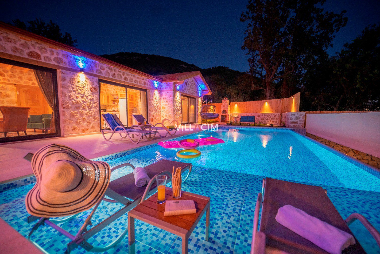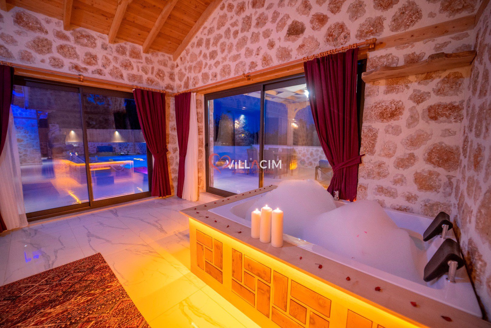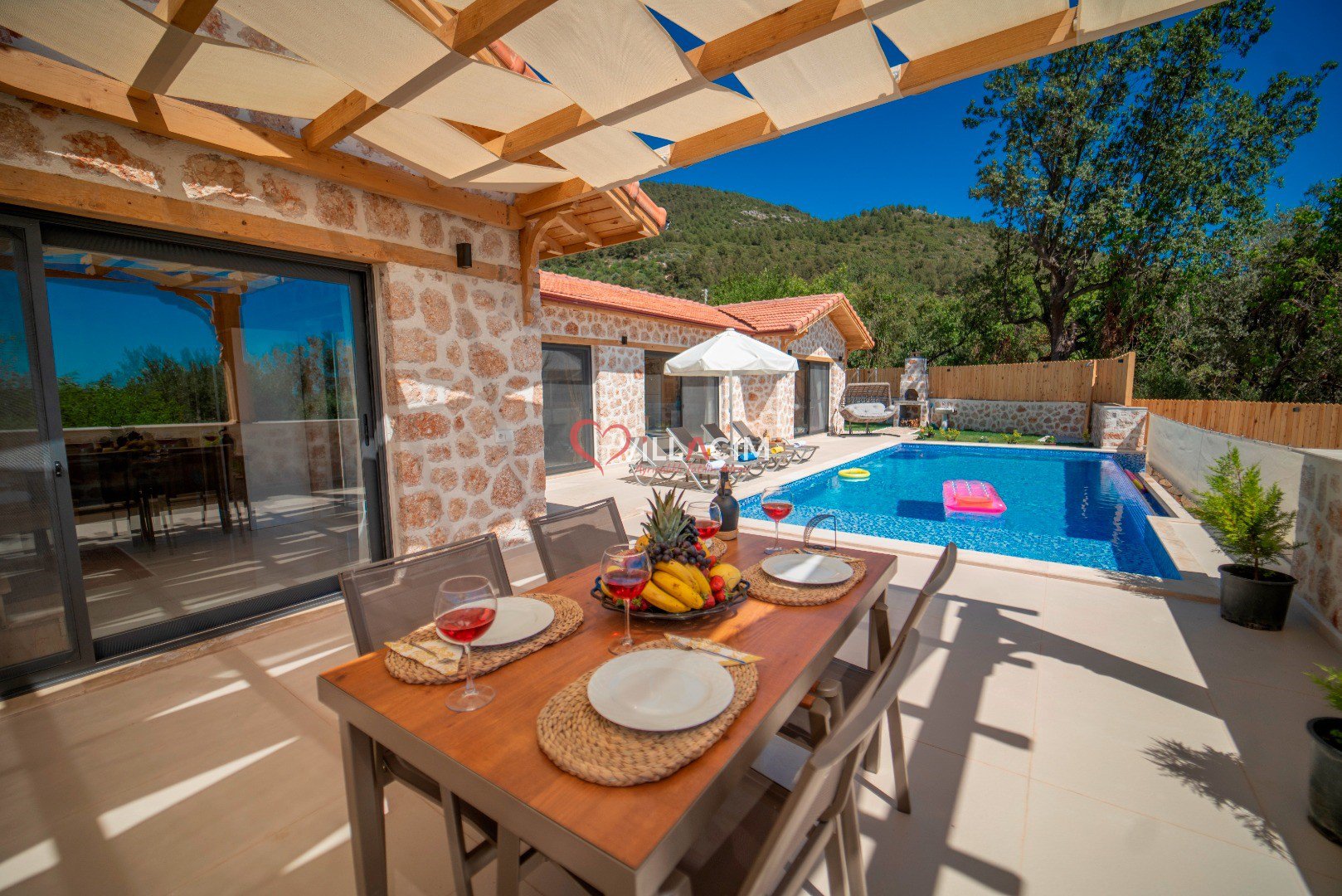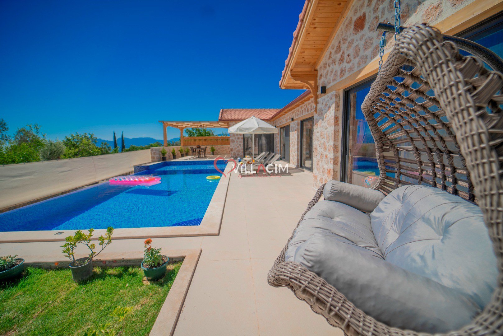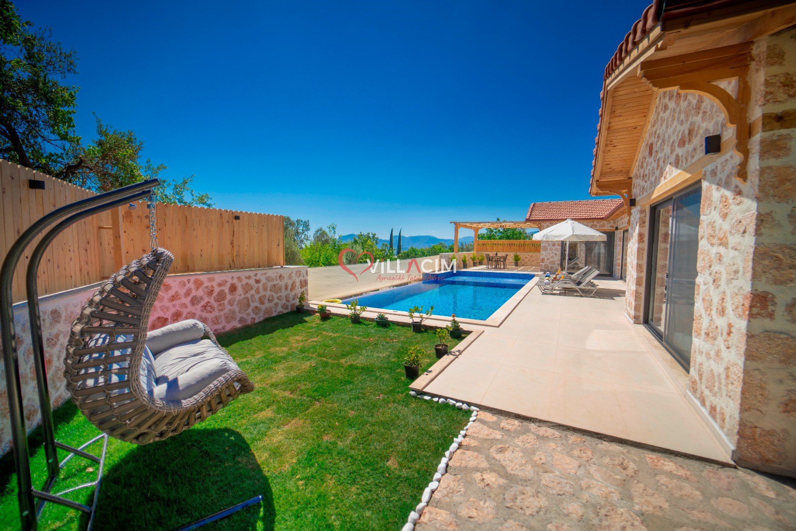 Villa İnci Üzümlü; Kalkan Üzümlü Köyü'nde bulunan 2 yatak odası ile 4 kişi konaklama kapasiteli tatil villamız. Doğa içerisinde konumlandırılmış olan villamızın aynı zamanda havuz alanı da korunaklıdır. Geniş bahçe alanına sahip villamızın aynı zamanda ana yatak odasında jakuzisi de mevcuttur.