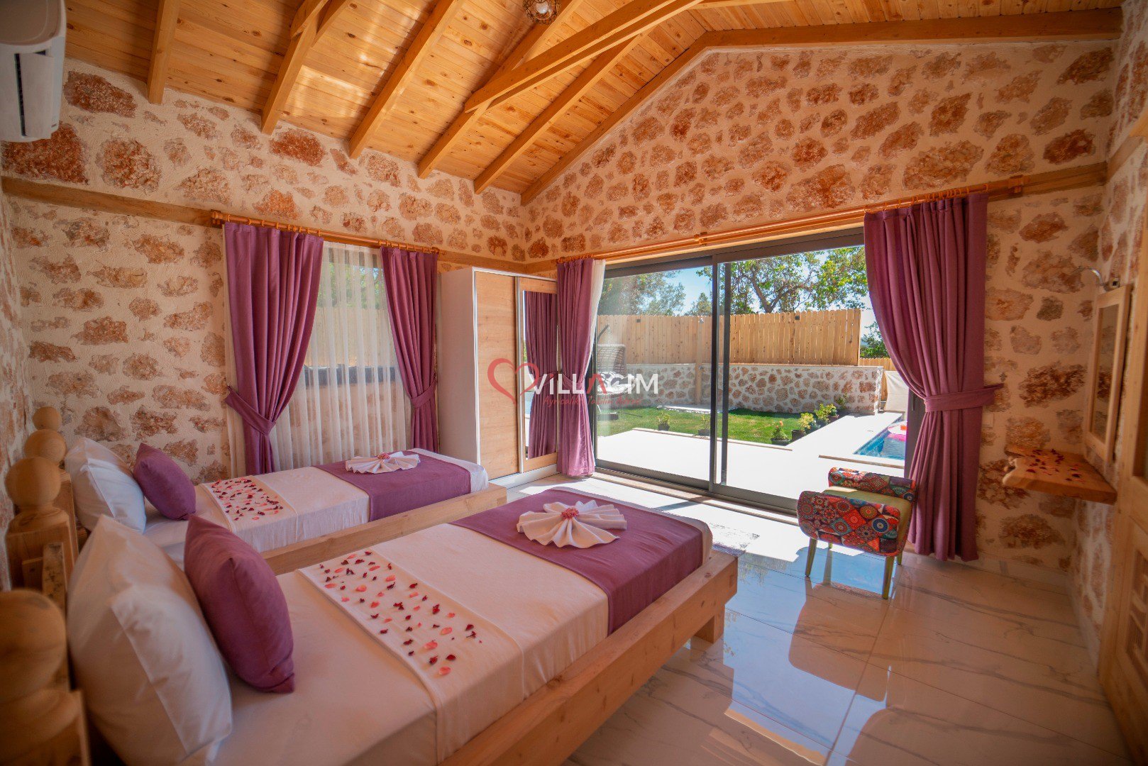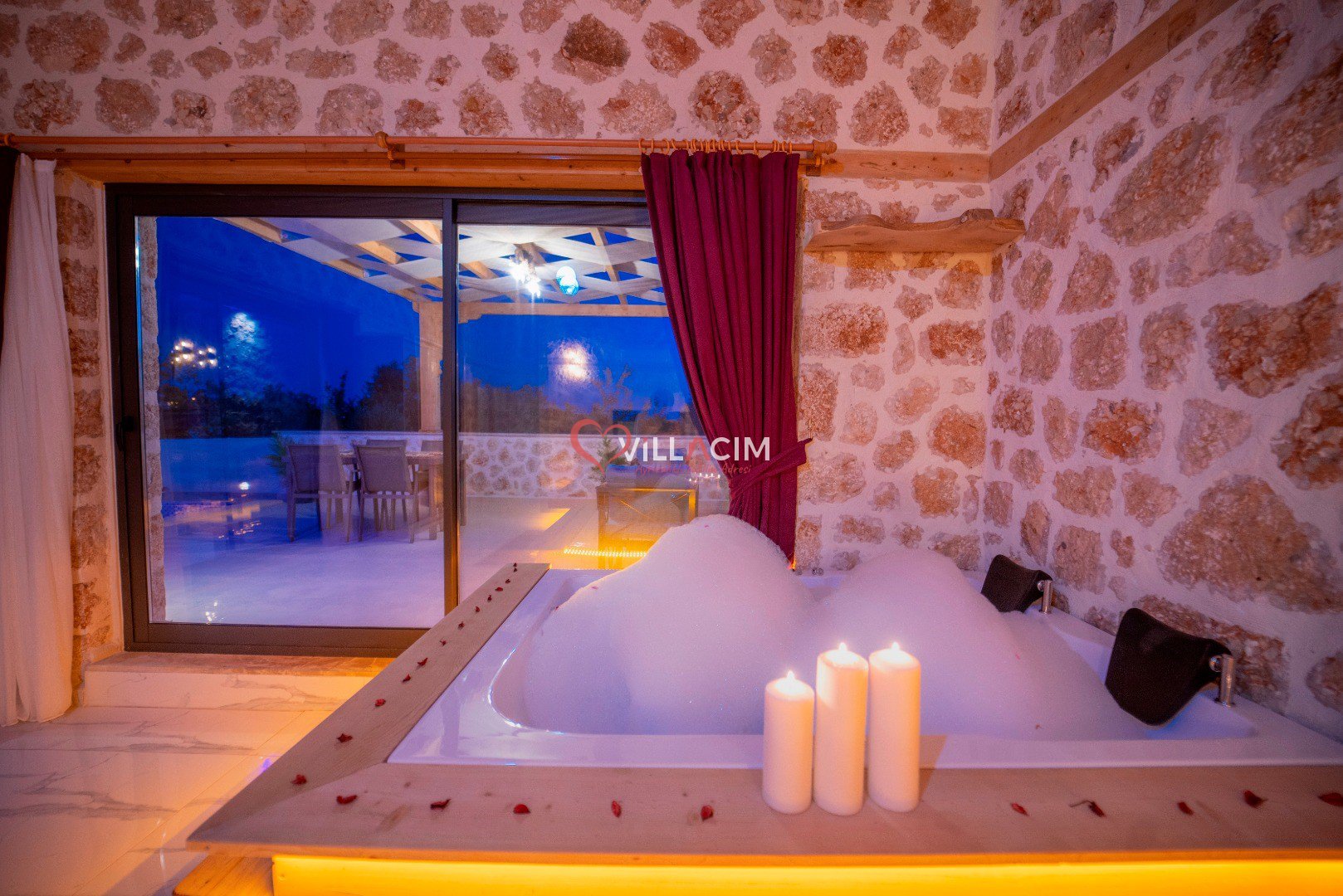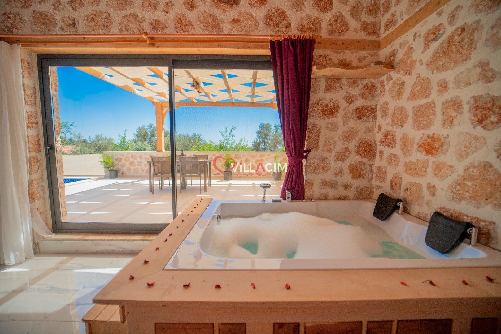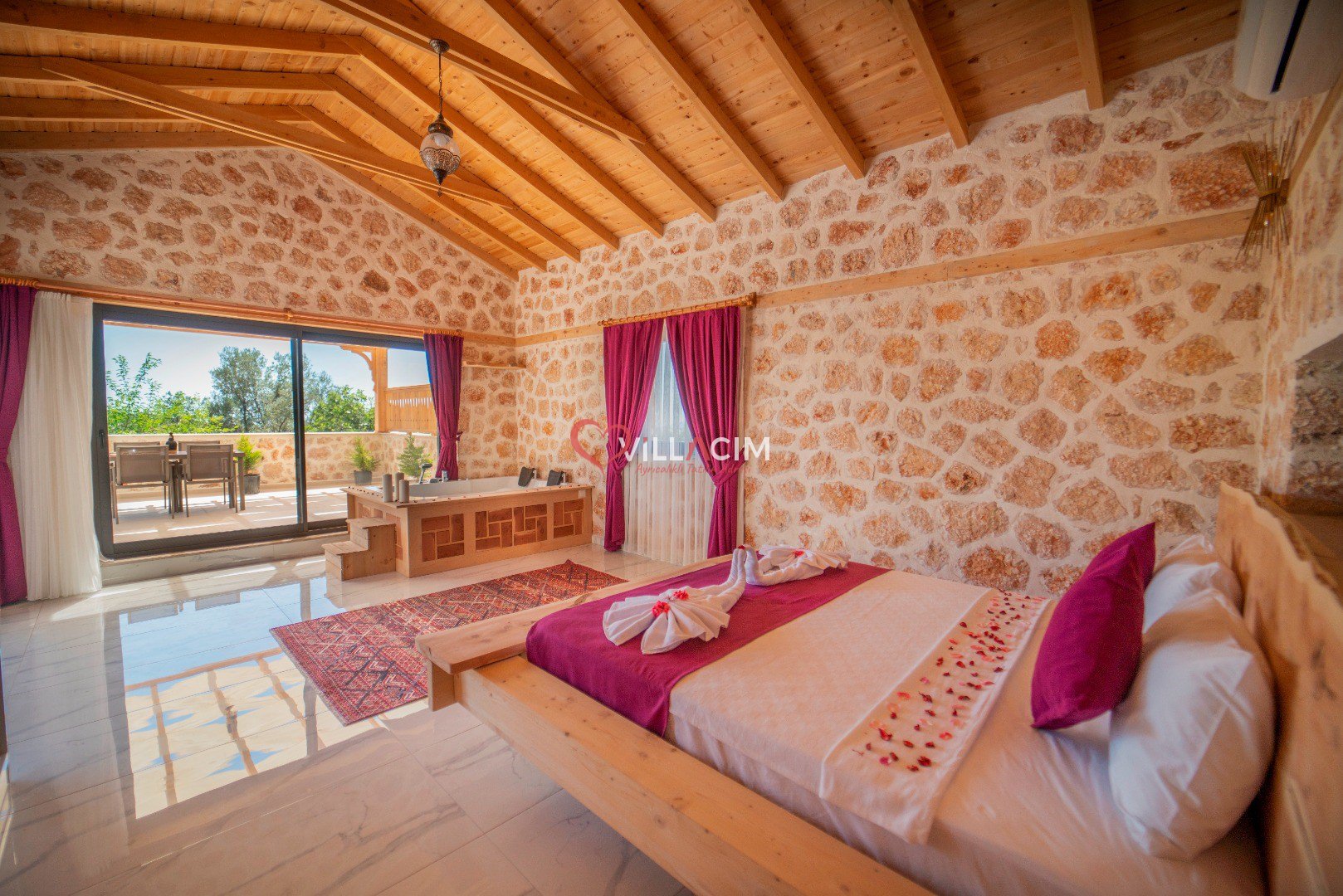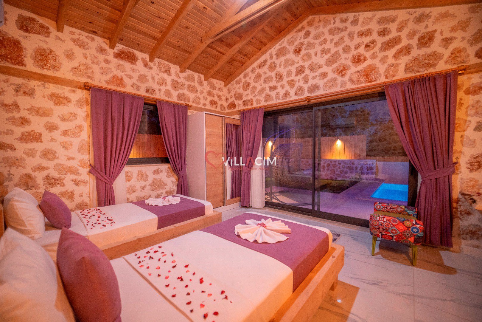 Villa İnci Üzümlü; Kalkan Üzümlü Köyü'nde bulunan 2 yatak odası ile 4 kişi konaklama kapasiteli tatil villamız. Doğa içerisinde konumlandırılmış olan villamızın aynı zamanda havuz alanı da korunaklıdır. Geniş bahçe alanına sahip villamızın aynı zamanda ana yatak odasında jakuzisi de mevcuttur.