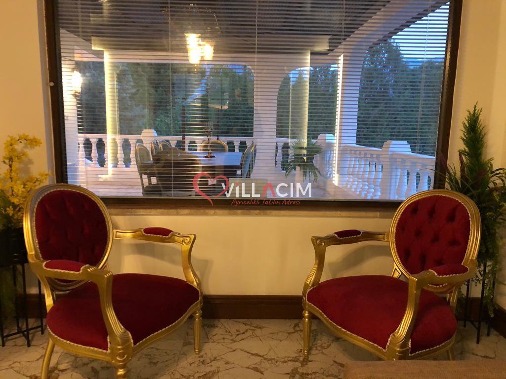 Kapasite: Villamız iki ayrı binadan oluşur ve toplamda 8 yatak odası, 4 banyo ile büyük gruplar için ideal bir alan sunar: