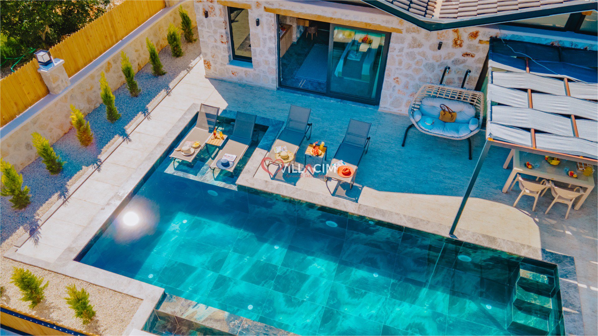 Mavi ile yeşilin kusursuz uyumunu bir arada yaşayabileceğiniz villamız, modern mimarisi ve ferah yaşam alanlarıyla dikkat çekmektedir. 4 kişilik konaklama kapasitesine sahip olan Villa Lome’de: