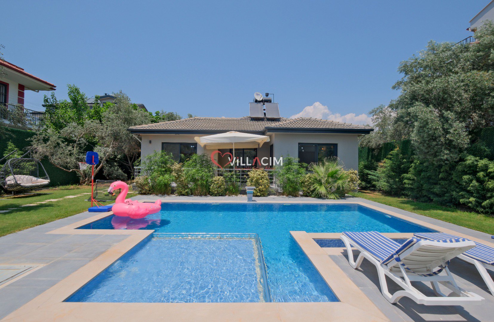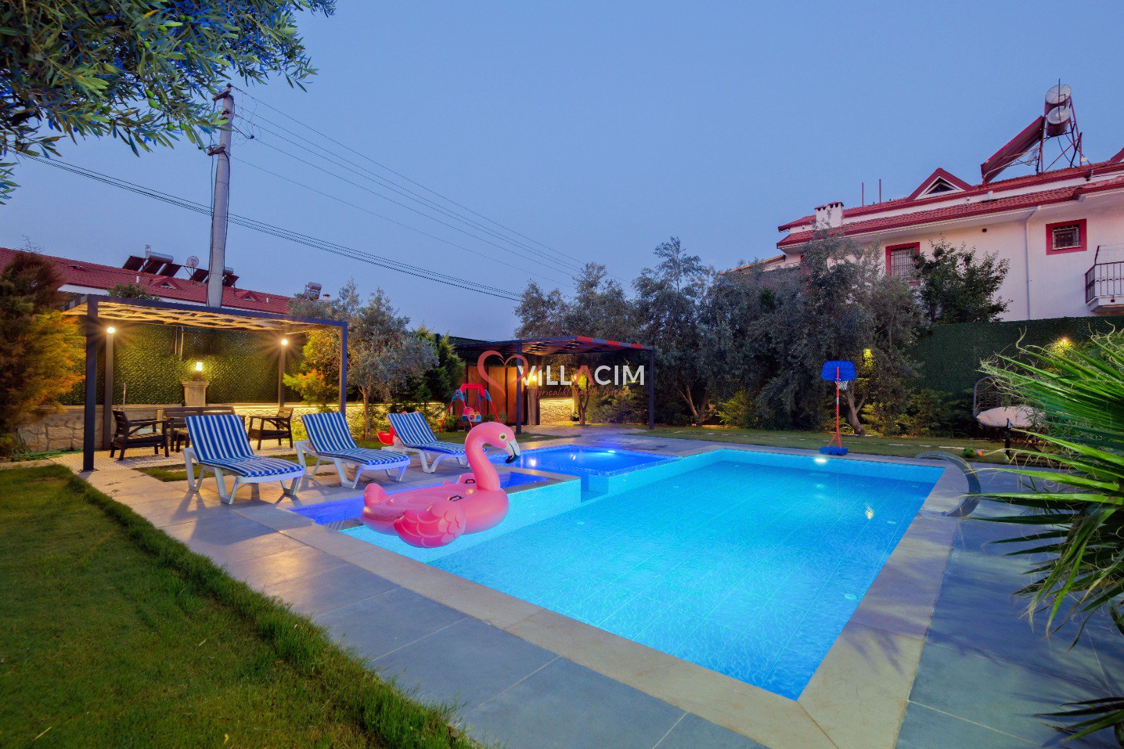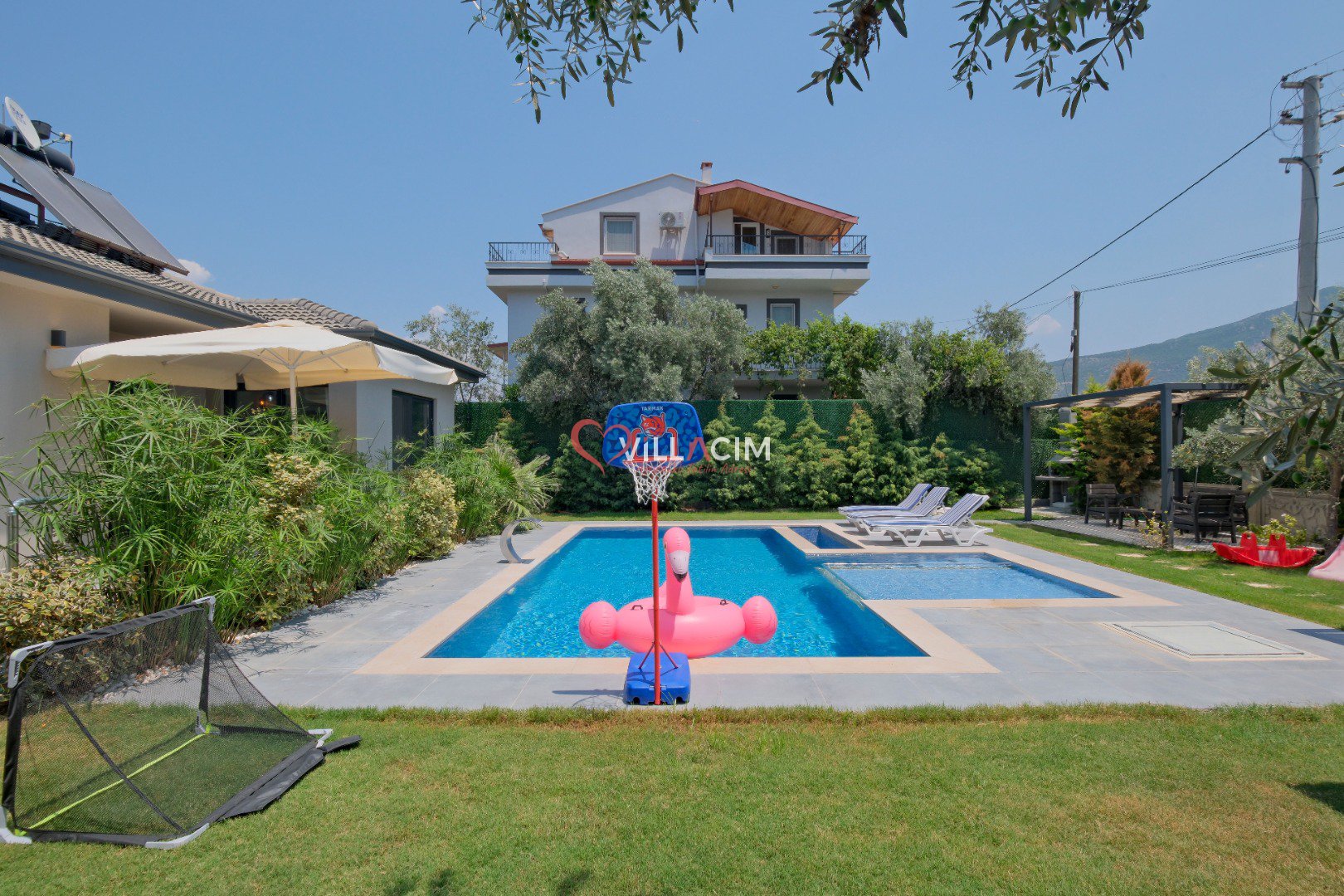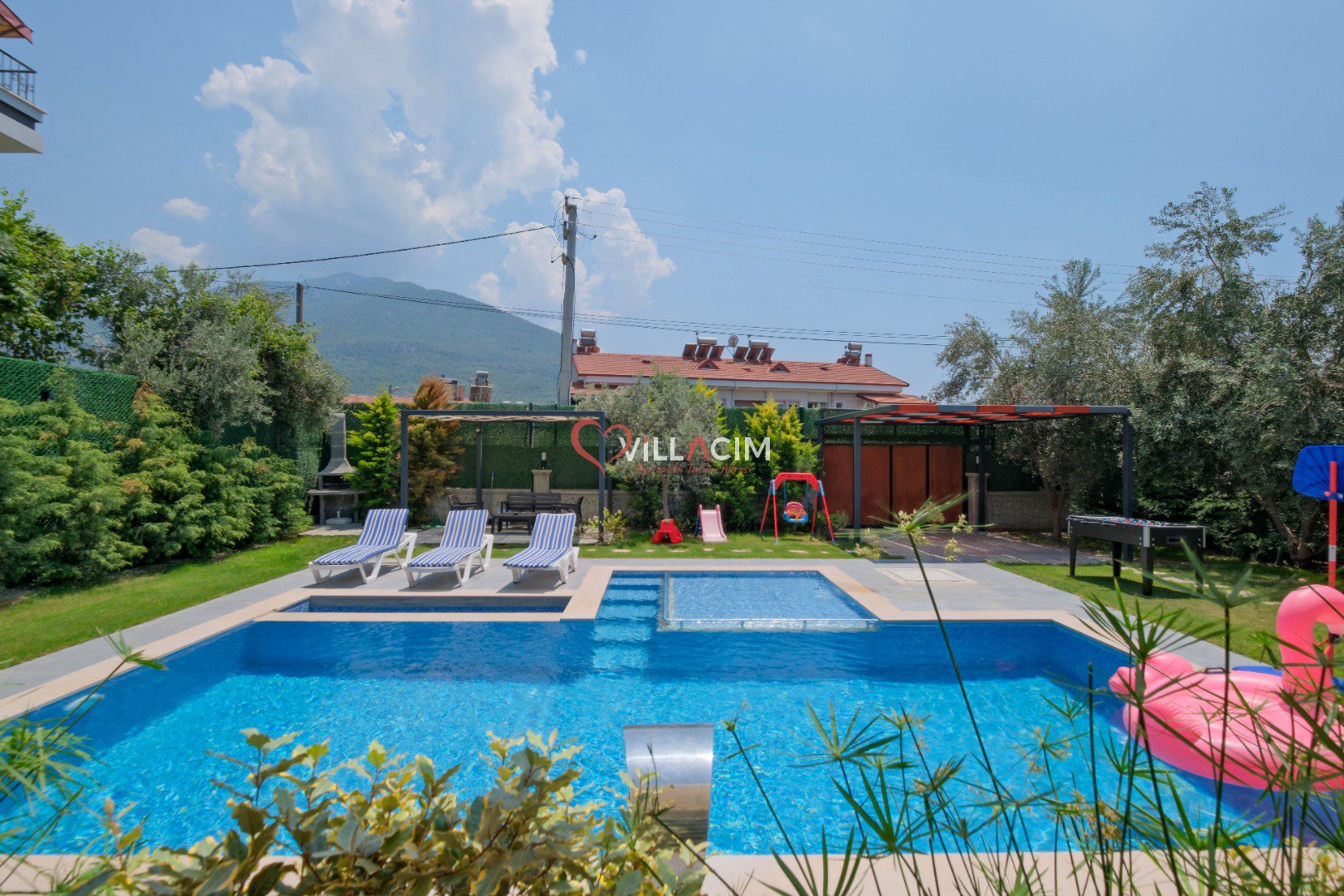 Fethiye’nin huzur veren doğasında, merkeze yalnızca 4 km uzaklıkta yer alan Villa Luyza, Haziran 2022’de inşa edilmiş yepyeni ve modern bir kiralık villa seçeneğidir. Zeytin ağaçlarıyla çevrili geniş bir bahçe içerisinde yer alan villa, hem yetişkinler hem de çocuklar için ayrı yüzme havuzları sunarak konforlu bir tatil deneyimi sağlar.