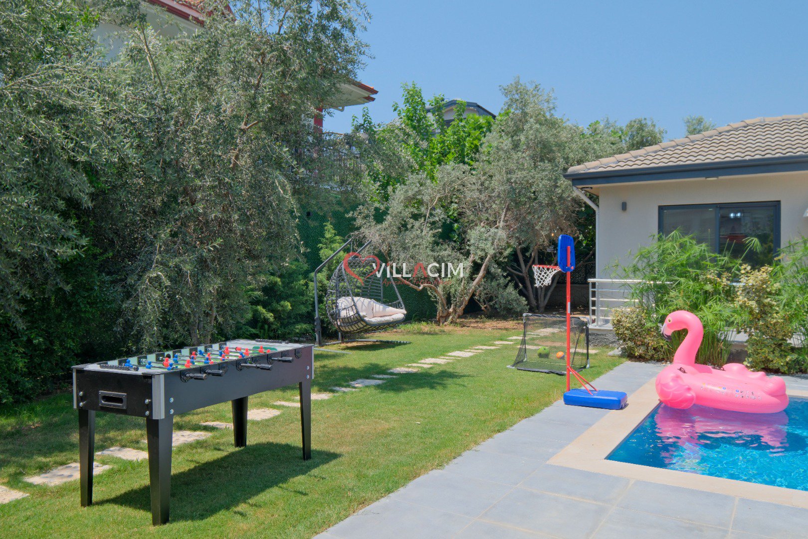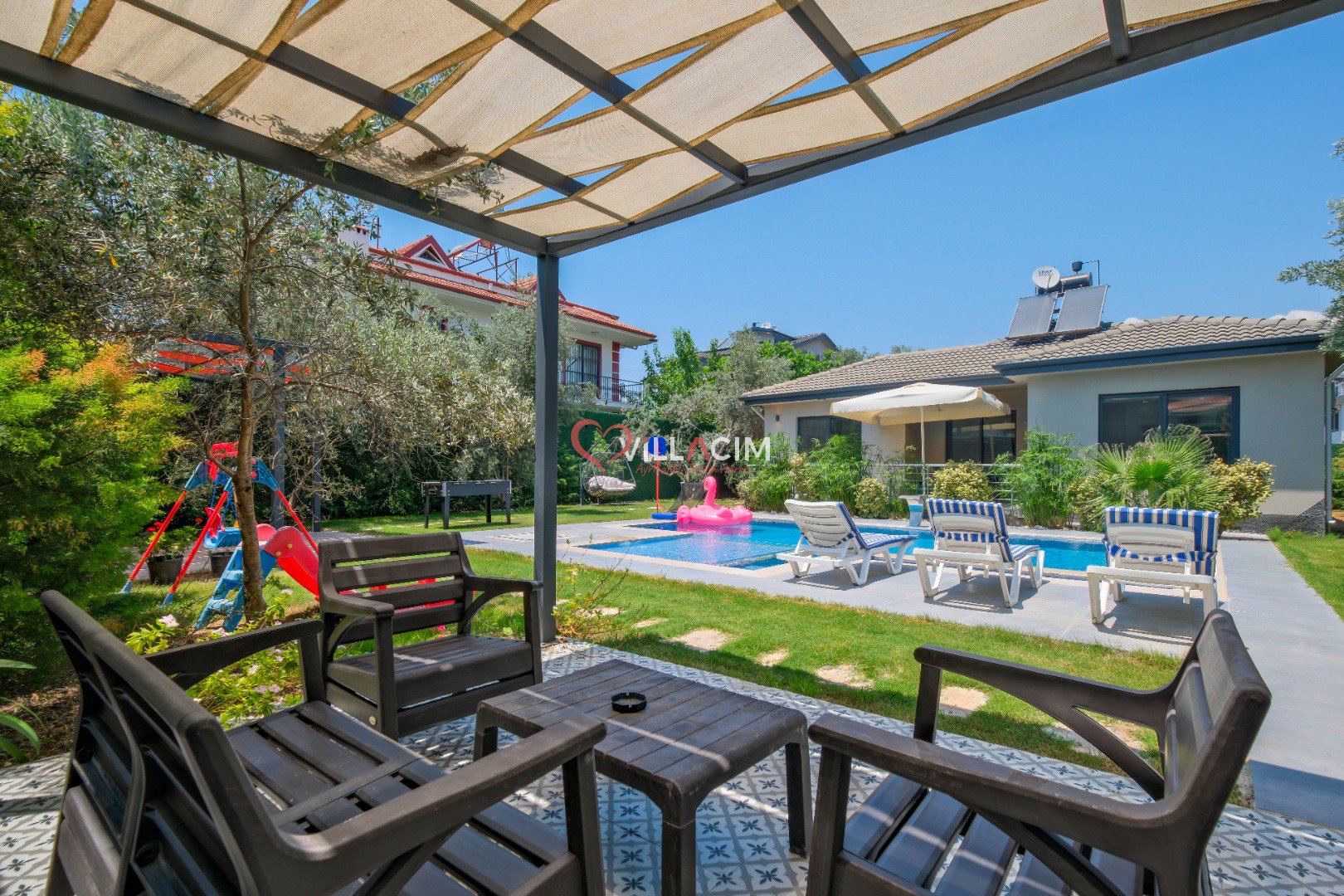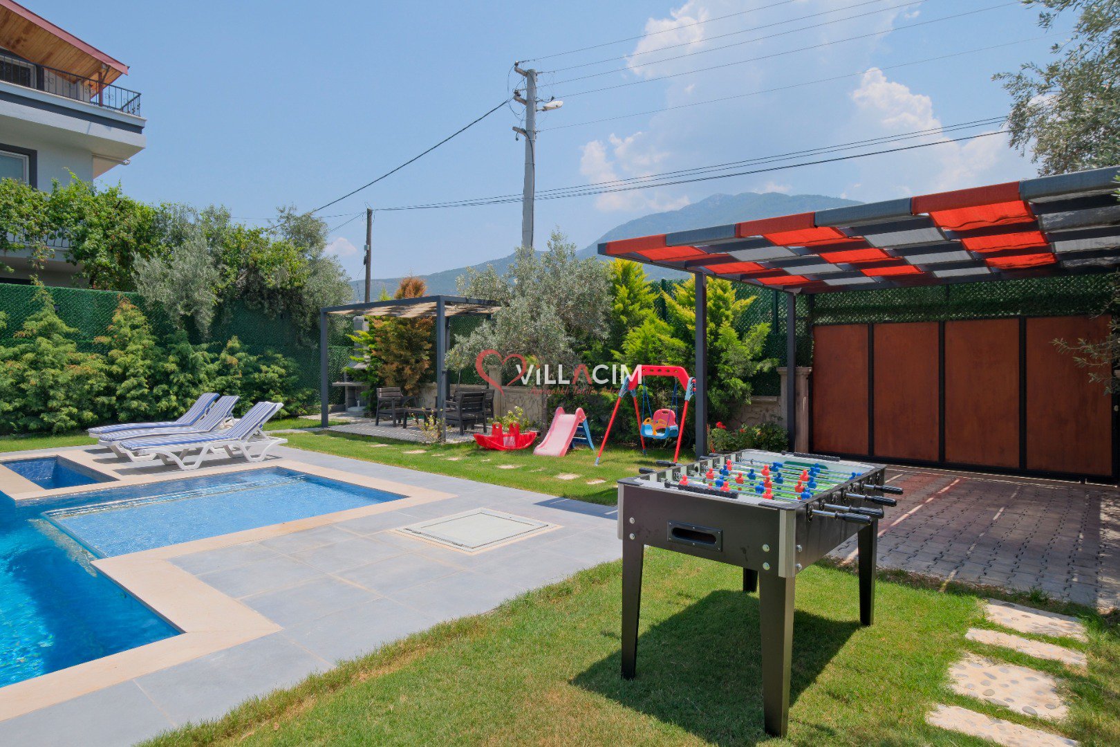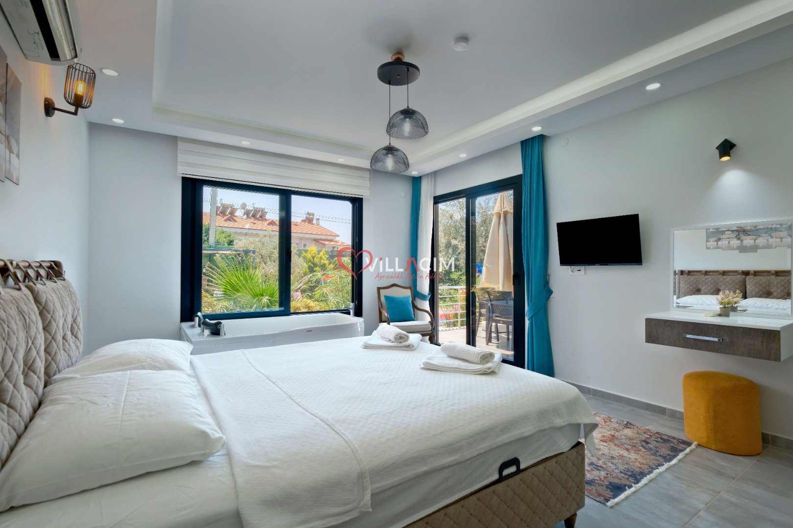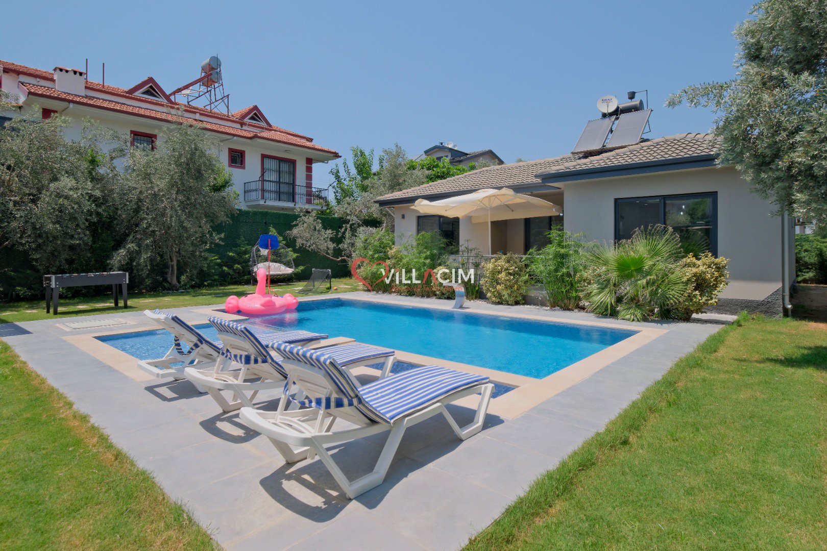 Fethiye’nin huzur veren doğasında, merkeze yalnızca 4 km uzaklıkta yer alan Villa Luyza, Haziran 2022’de inşa edilmiş yepyeni ve modern bir kiralık villa seçeneğidir. Zeytin ağaçlarıyla çevrili geniş bir bahçe içerisinde yer alan villa, hem yetişkinler hem de çocuklar için ayrı yüzme havuzları sunarak konforlu bir tatil deneyimi sağlar.