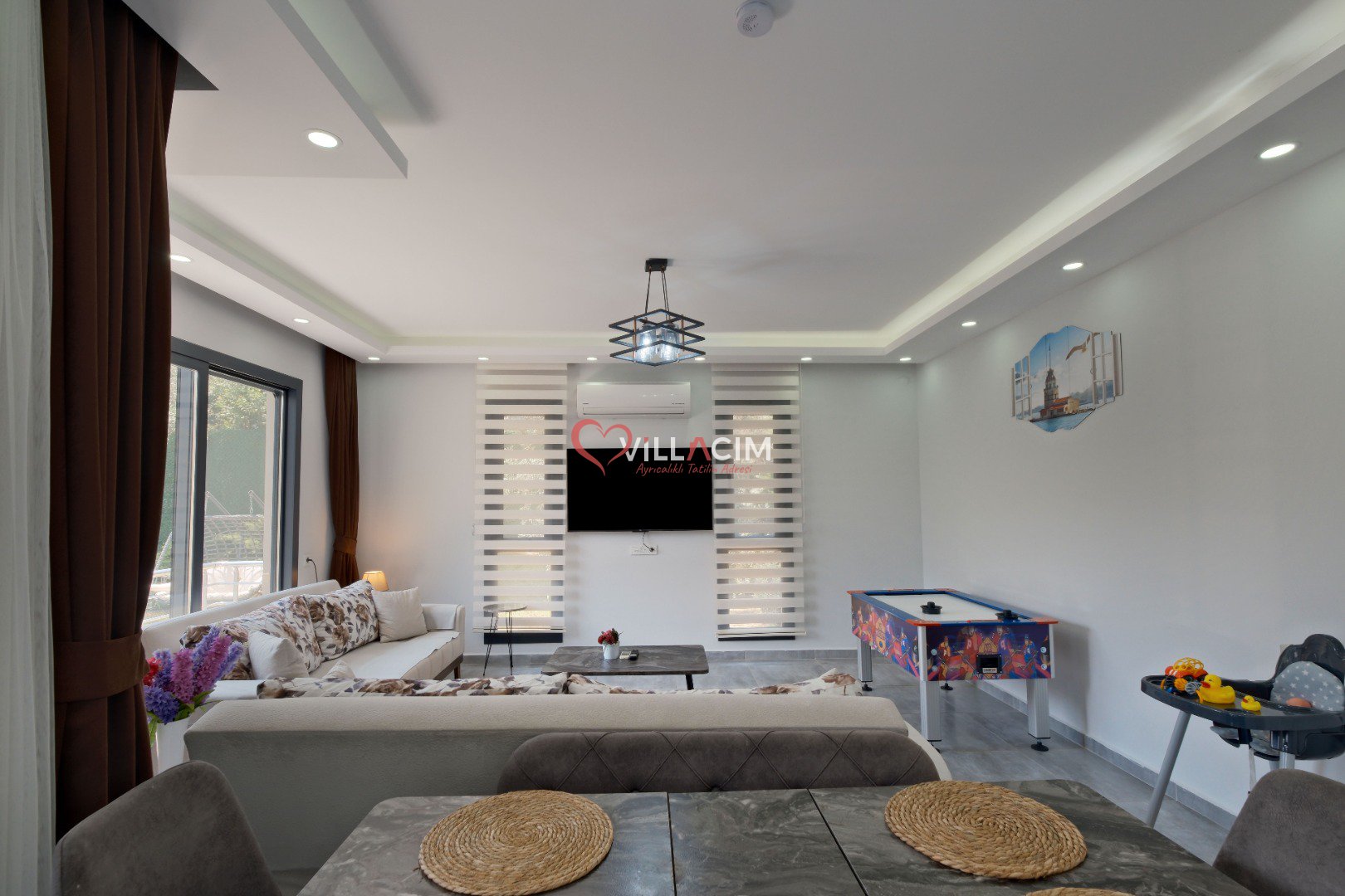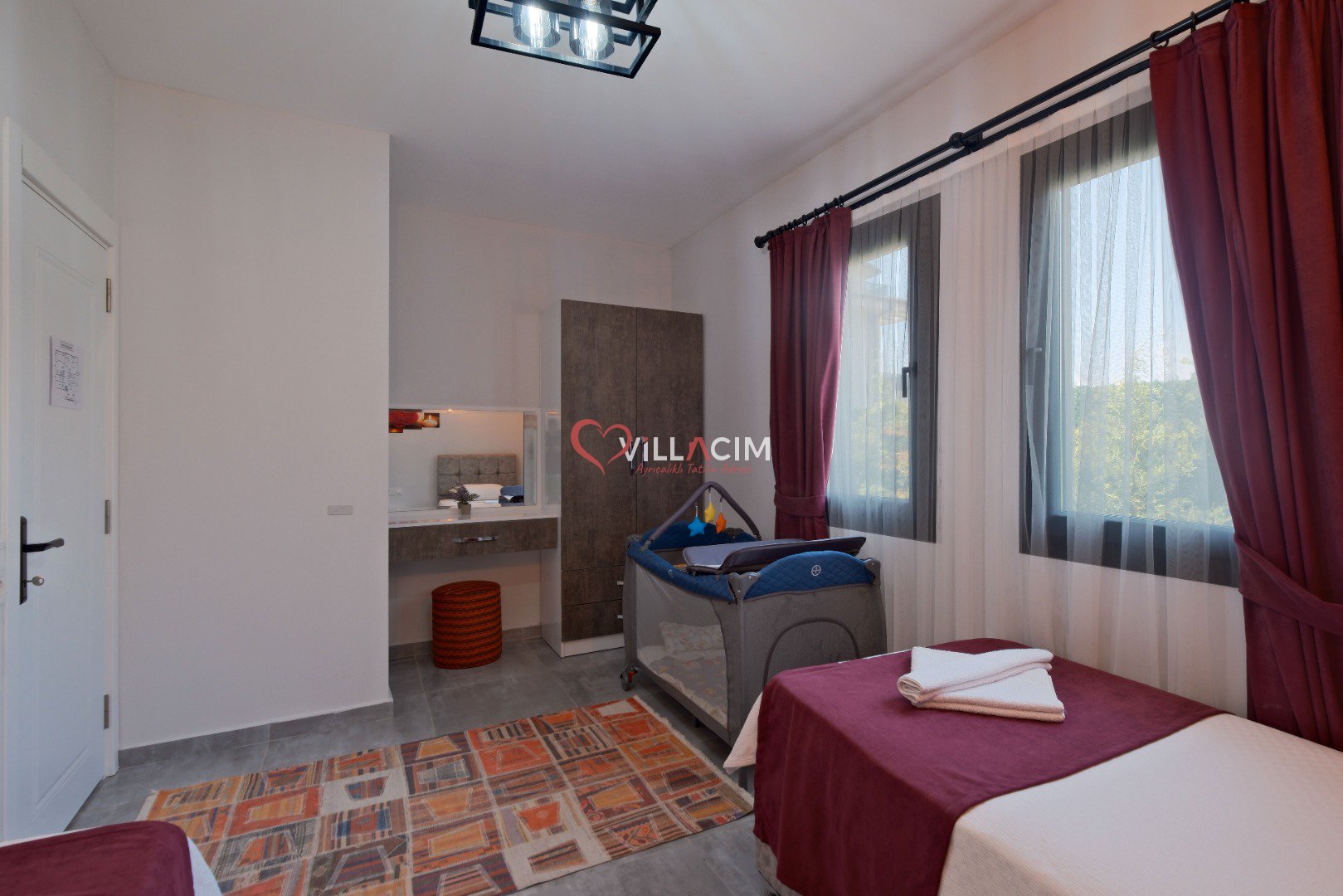 NOT: Evcil hayvanların kendi yataklarının getirilmesi, villada bulunan yatak ve oturma grubuna çıkarılmaması, havuza girmemesi koşulu ile kabul edilmektedir.