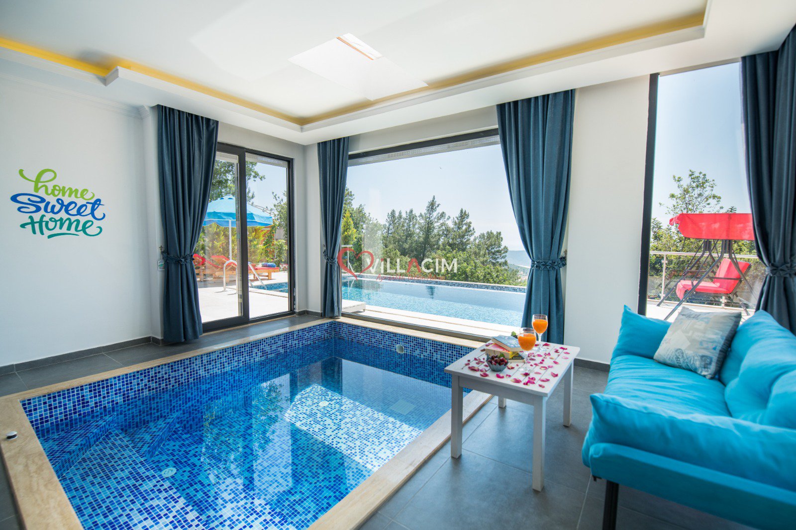 Antalya / Kalkan Üzümlü bölgesinde yer alan 2 kişi kapasiteli tatil villamız aynı zamanda her mevsim tercih edilebilmesi adına kapalı ısıtmalı havuzuda mevcuttur. Muhafazakar aileler ve balayı çiftleri için uygundur.
