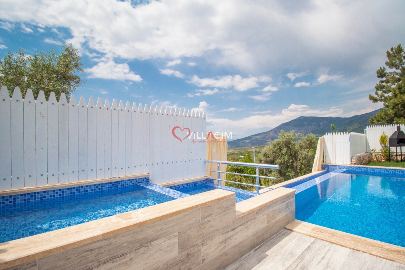 Antalya / Kalkan Üzümlü bölgesinde bulunan 4 kişi kapasiteli tatil villamız. Havuz alanı korunaklı villamızın Çocuk havuzu ve jakuzisi mevcuttur. Balayı çiftleri, çekirdek aileler için uygundur.