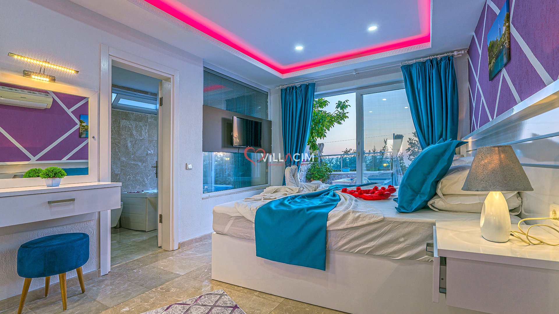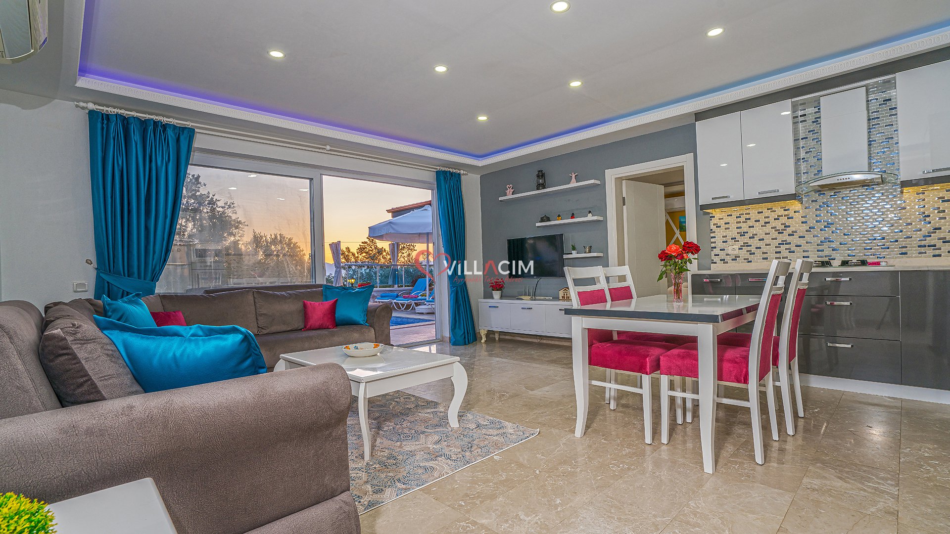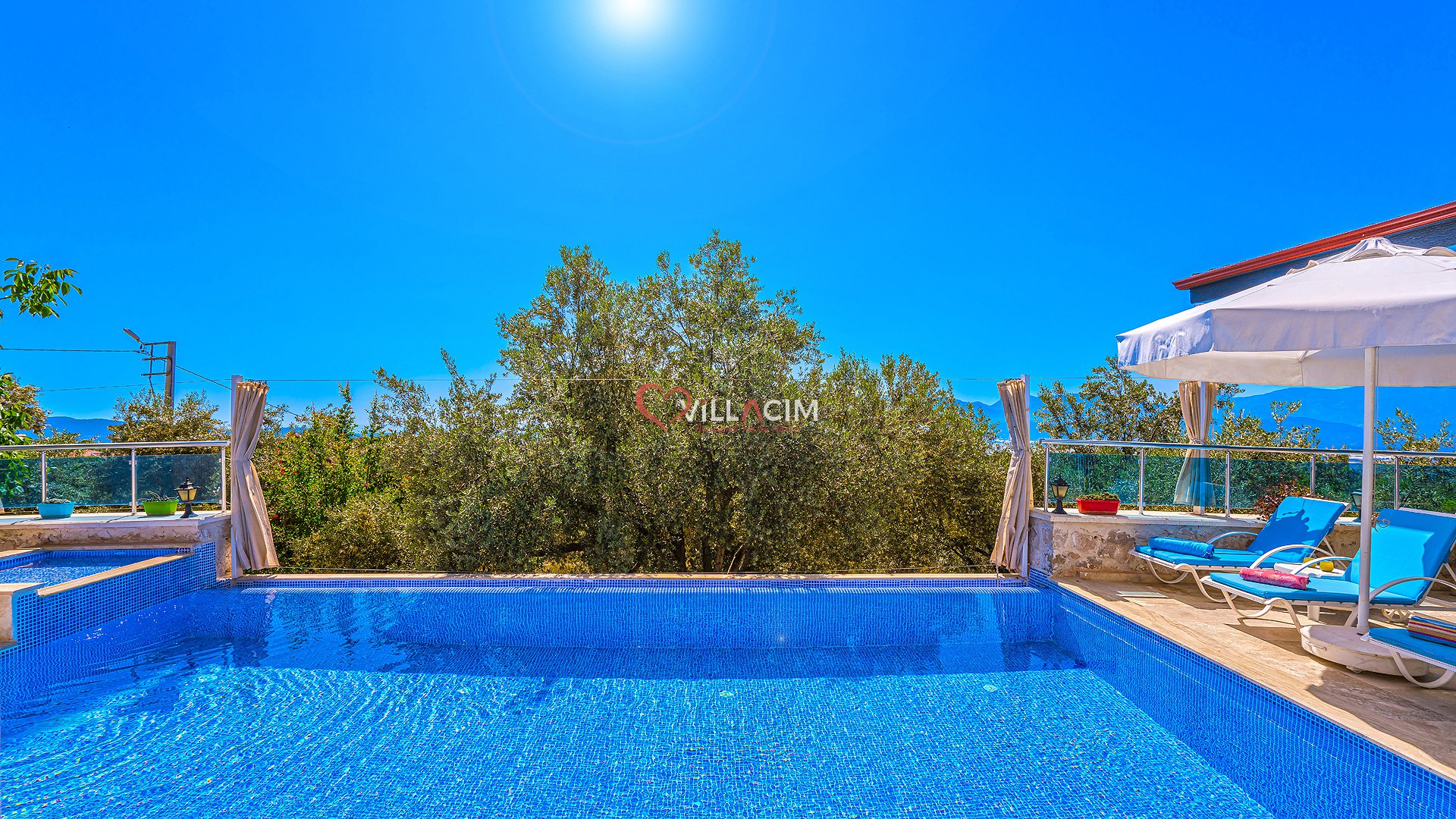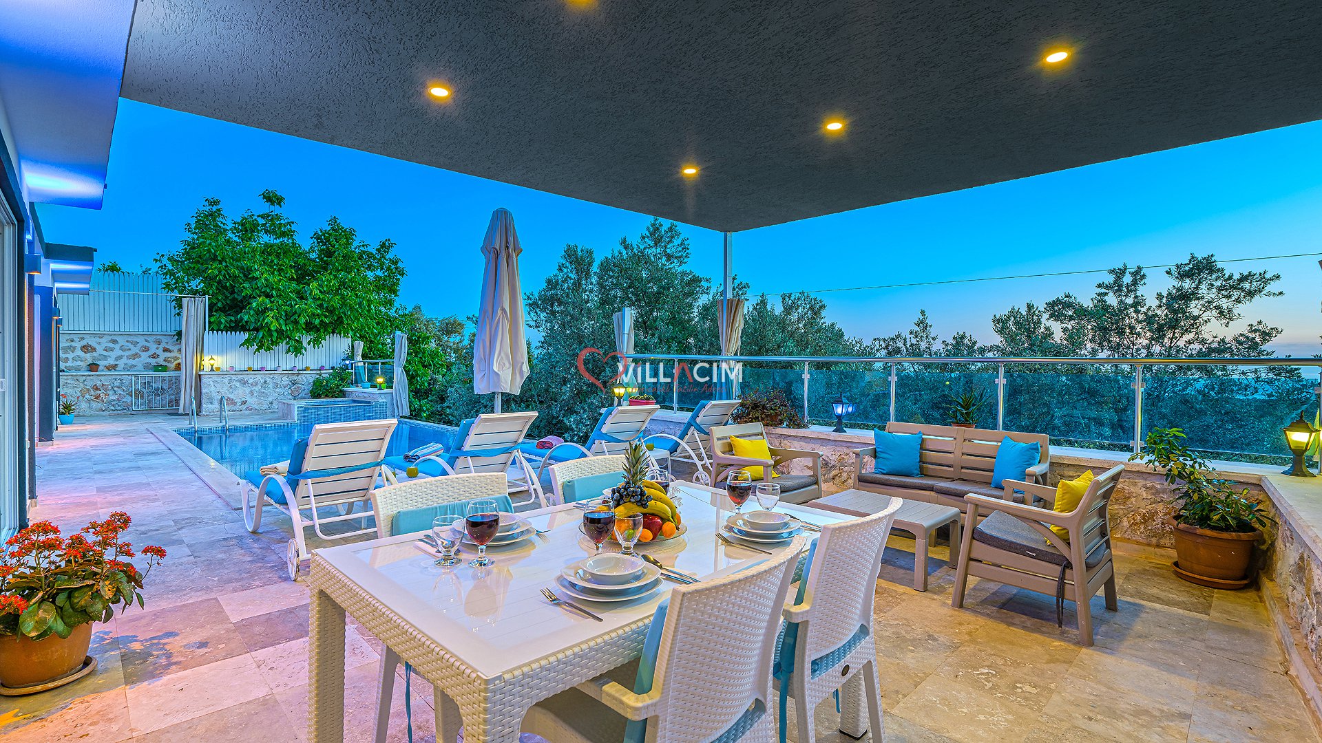 Antalya / Kalkan Üzümlü bölgesinde bulunan 4 kişi kapasiteli tatil villamızdır. Havuz alanı korunaklı olan villamızın kıs ayında havuz alanı kapatılı ısıtma sistemi acılmaktadır. içerisinde çift kişilik jakuzisi bulunmkatdır. Balayı çiftleri ve çekirdek aileler için uygundur.