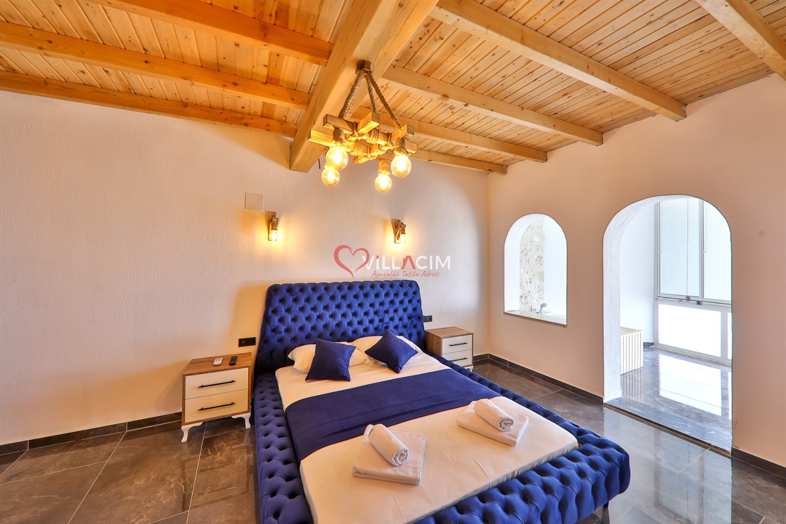 Özenle dekore edilmiş üç yatak odası, misafirlerin konforu ön planda tutularak hazırlanmıştır. Villanın öne çıkan ayrıcalıklarından biri ise özel hamam, sauna ve kapalı havuz alanıdır. Dört mevsim kullanıma uygun olan bu özel alan, tatil boyunca dinlenmek ve yenilenmek isteyen misafirler için benzersiz bir deneyim sunar.