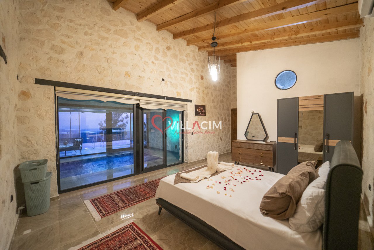 Antalya / Kalkan İslamlar bölgesinde yer alan 2 kişi kapasiteye sahip jakuzili aynı zamanda içerisinde Kapalı ısıtmalı havuzu bulunan tatil villamız. Muhafzakar aileler ve balayı çiftleri için uygundur.