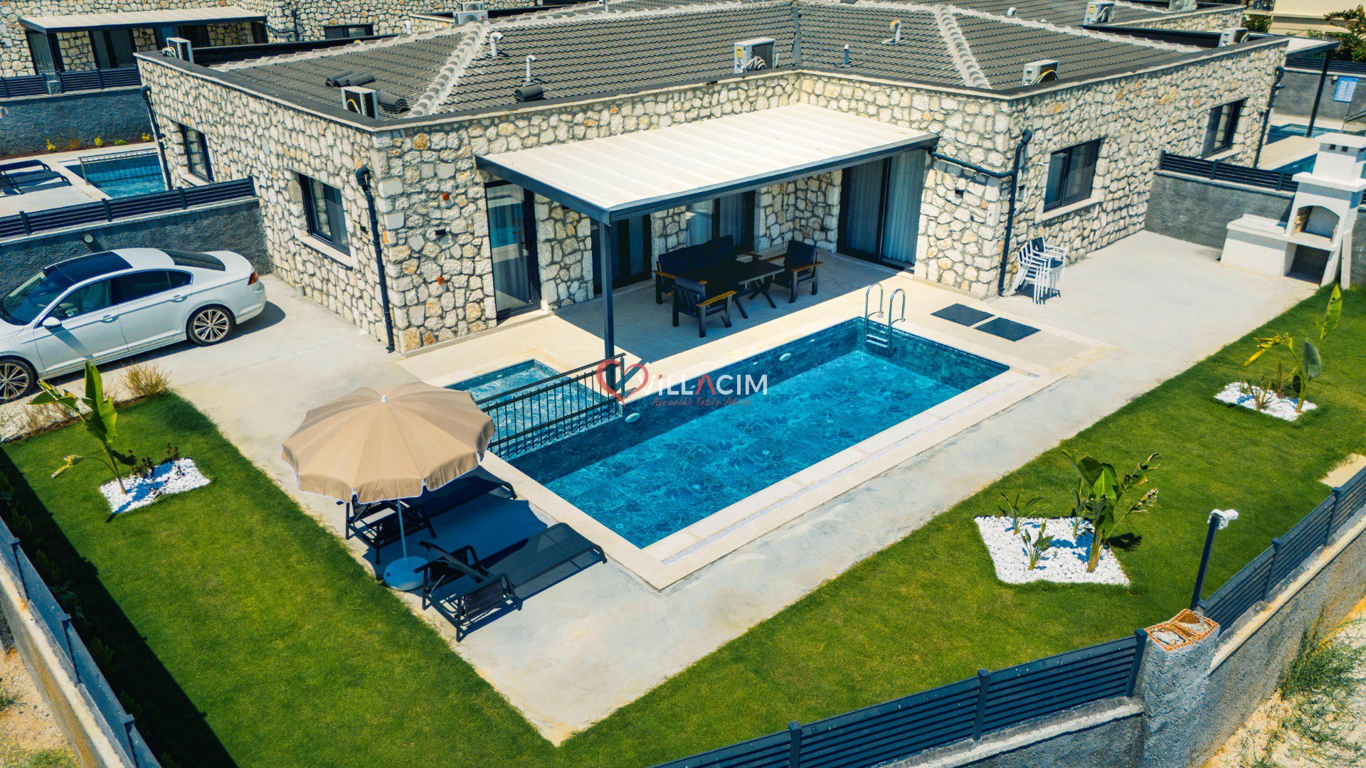 Dikkat Notu: Villanın yer aldığı bölgede, aynı özelliklere sahip toplam 8 adet villa bulunmaktadır. Tüm villalar özel havuzlu olup, iç ve dış dekorasyonları aynıdır. Bu nedenle görseller ortak olarak kullanılmaktadır.