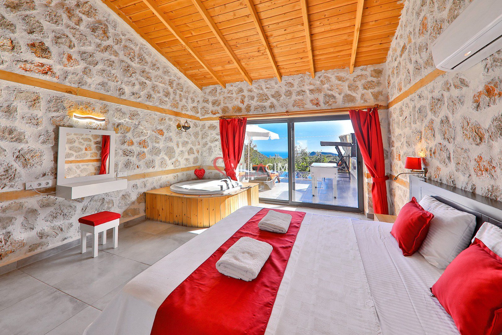 Antalya / Kalkan İslamlar mevkiinde bulunan 4 kişi kapasiteli tatil villamız. Doğa içerisinde yer alan villamızın havuz alanı korunaklıdır. Villamızın jakuzisi ve langırtı mevcuttur. Balayı çiftleri ve çekirdek aileler tercih edebilir.